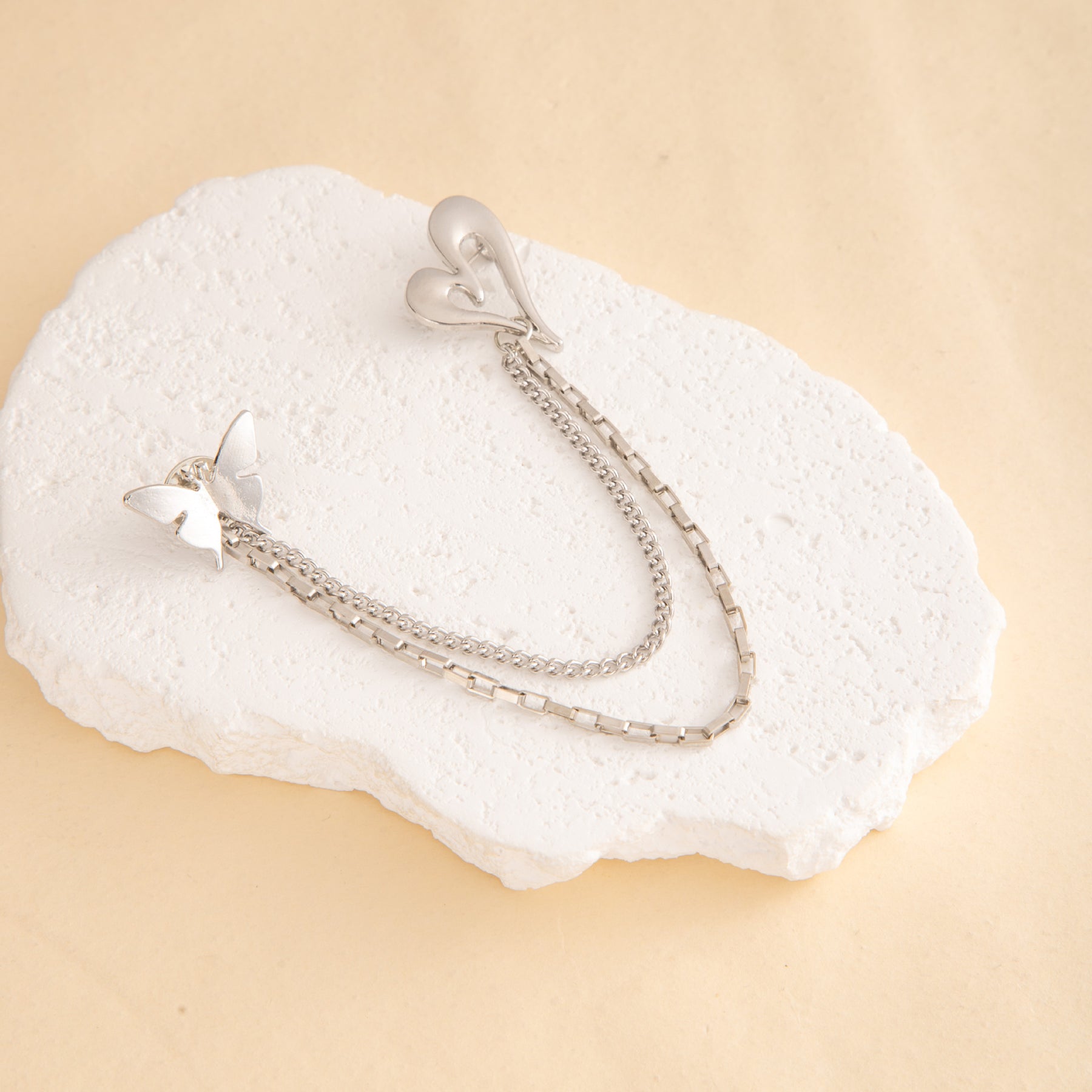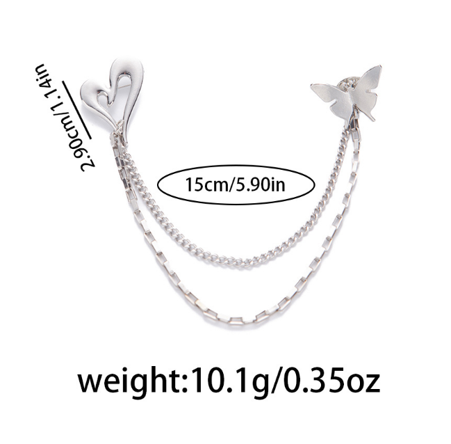 Hollow Heart & Butterfly Tassel Brooch, Minimalist Versatile Lapel Pin, Anti-Exposure Accessory For Suits & Dresses, Elegant Fashion Jewelry