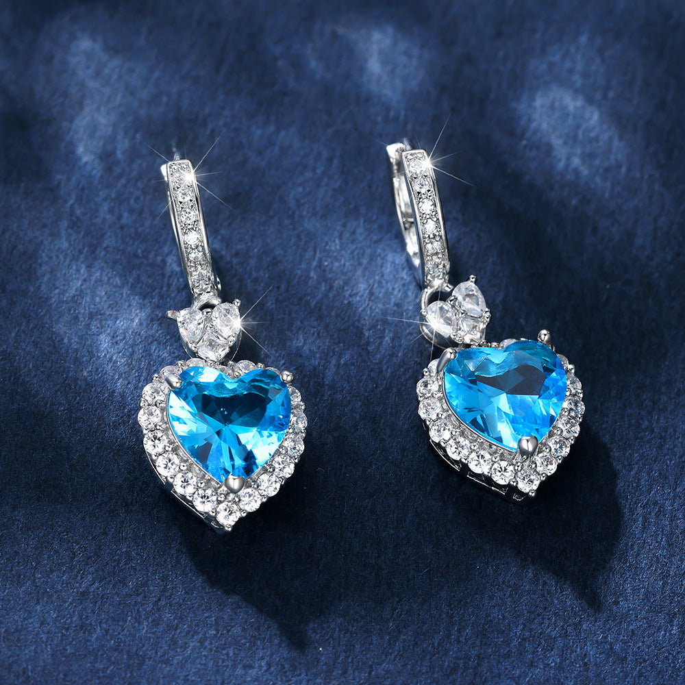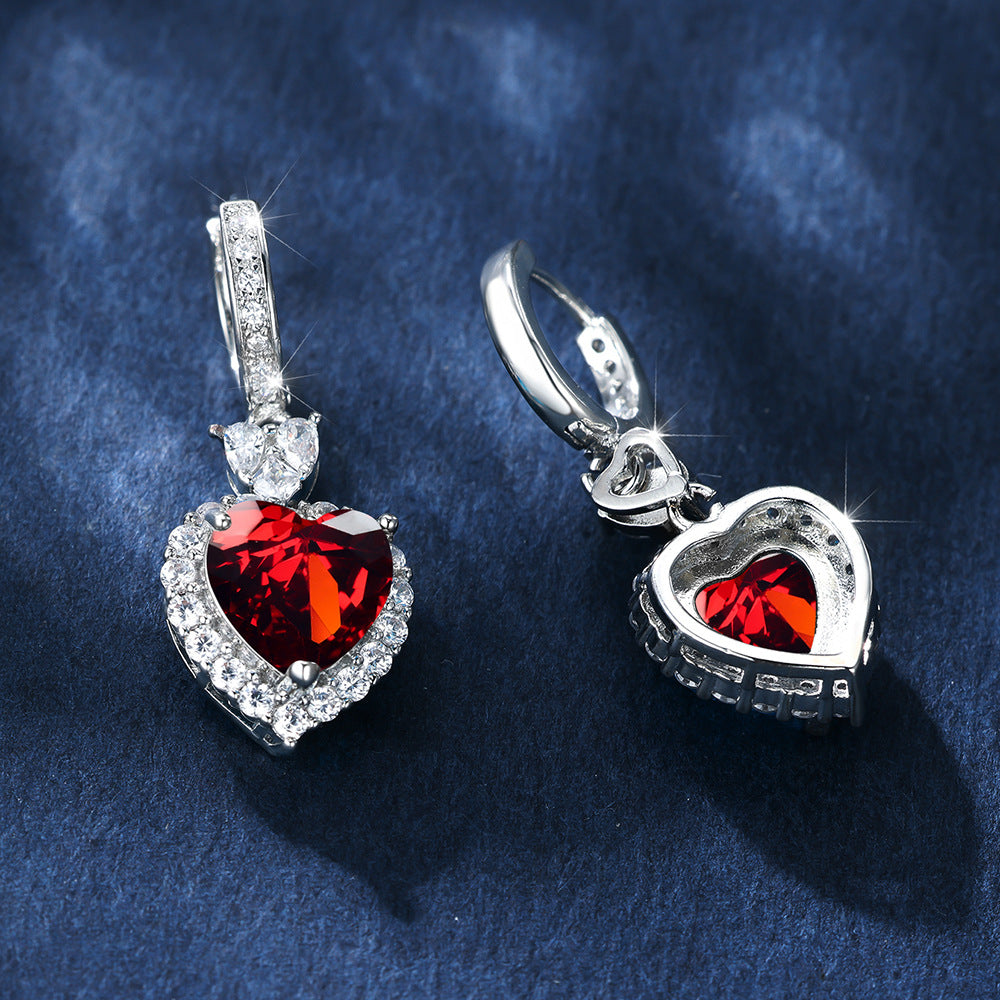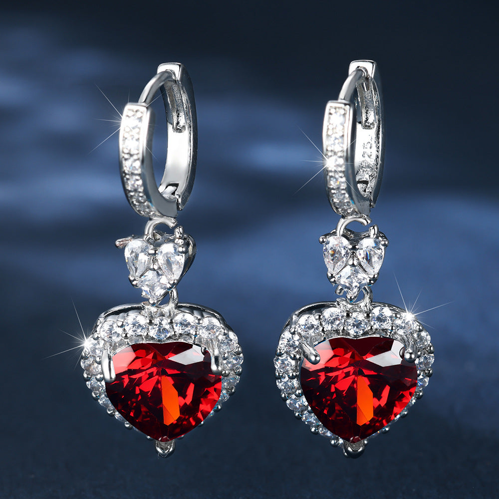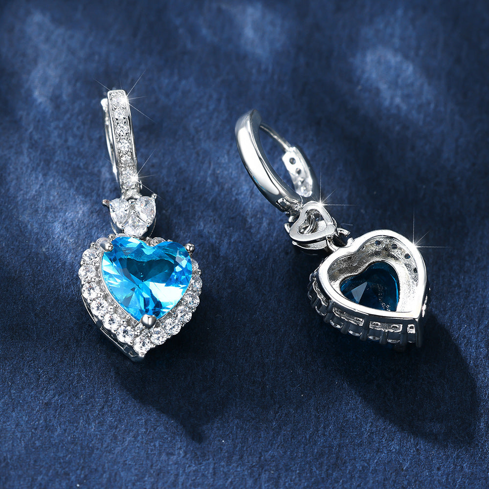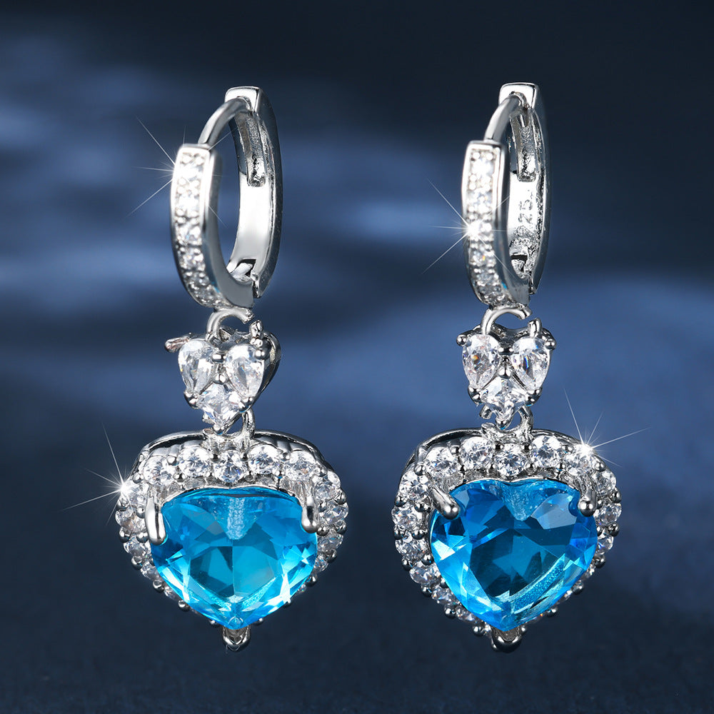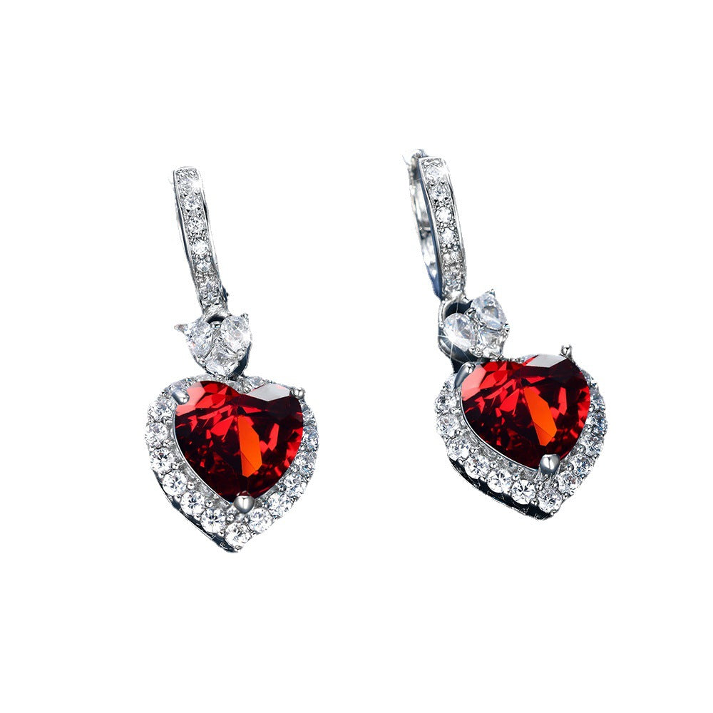 Product information: Color: Platinum red diamond, platinum Blue Diamond Style: Women's Material: Copper Shape: heart shape Style: Simple