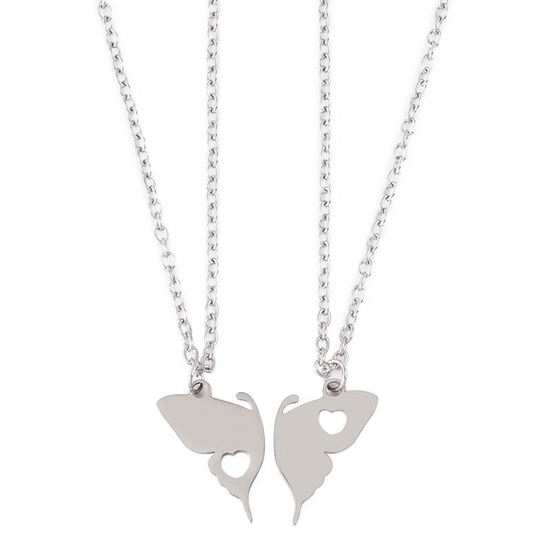 All-match Niche Design Butterfly Stitching Pendant Couple Necklace