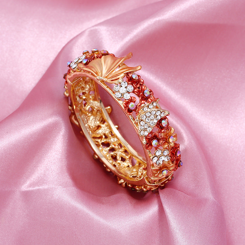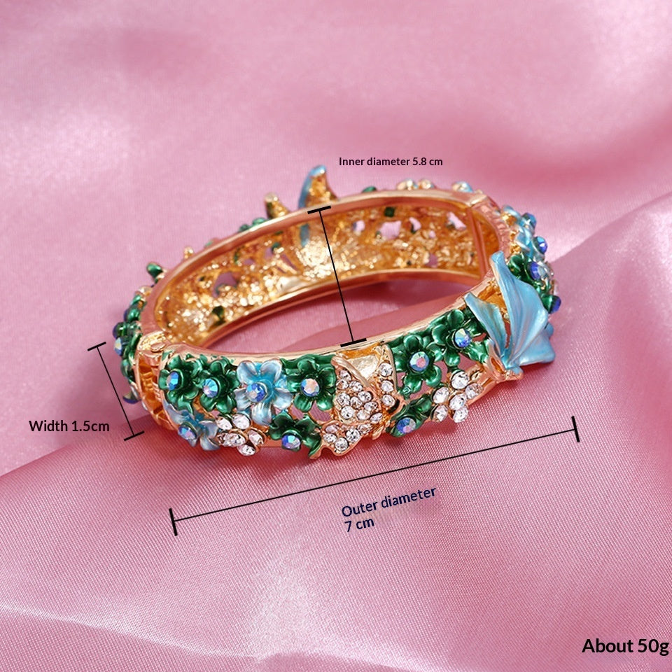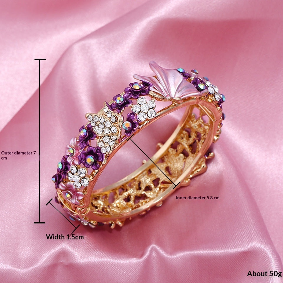 Product information: Processing Technique: Hand-Painted Color: Red, Purple, Blue, Multi-Color, Champagne Material: Alloy Trendy Element: Flowers Style: Vintage