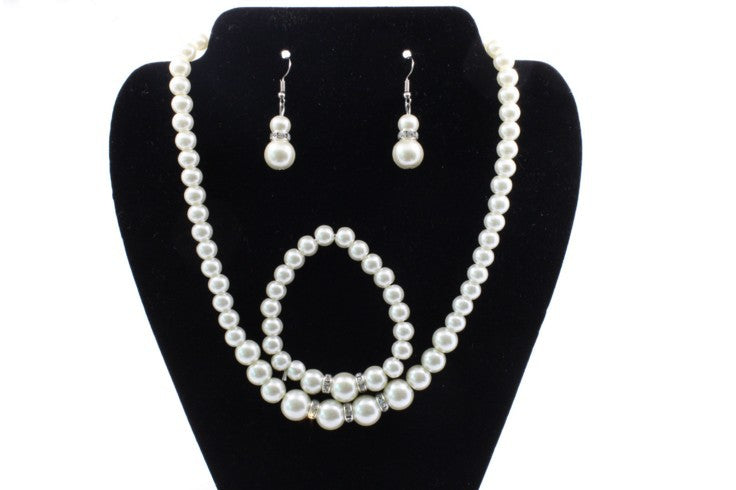 Fast sell hot bridal decorations, wedding jewelry set, pearl necklace, earring, bracelet wholesale