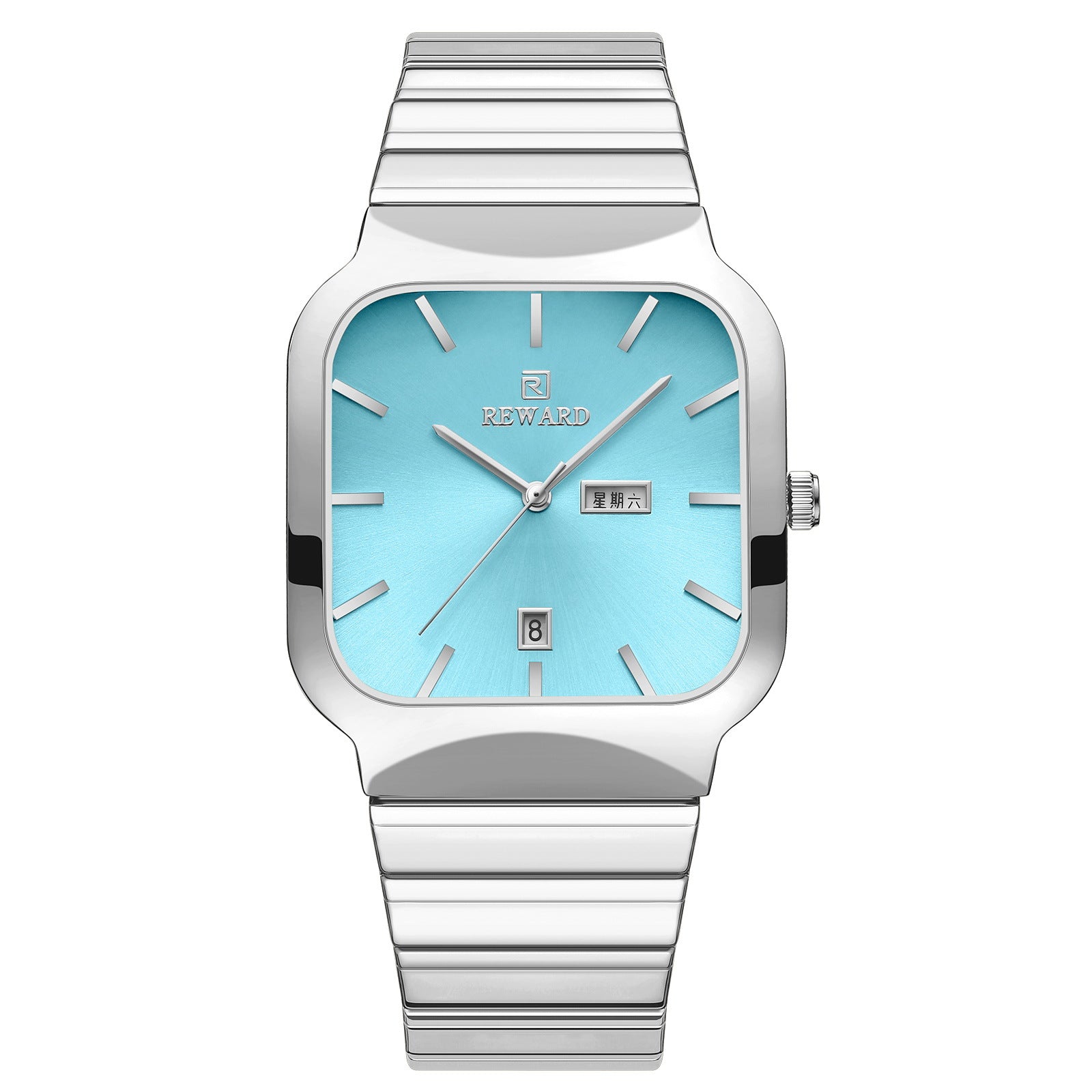 Color: M gold shell gray surface gold watchband, M gold shell gold surface gold watchband, M Silver Case Blue surface silver stripes, L gold shell white surface gold watchband, L gold case gold surface gold strap, L Silver Case Blue surface silver stripes